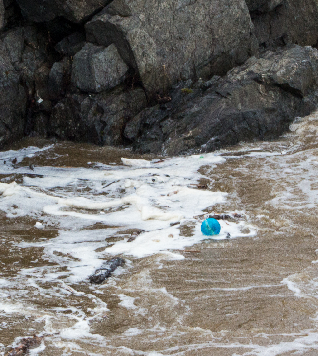 In the water yesterday all sorts of debris was being washed along. A small boy near to us at the viewing overlook number 3 was thrilled to spot this ball and kept his eye on it for several minutes as it bobbed along with the fallen tree trunks and more.